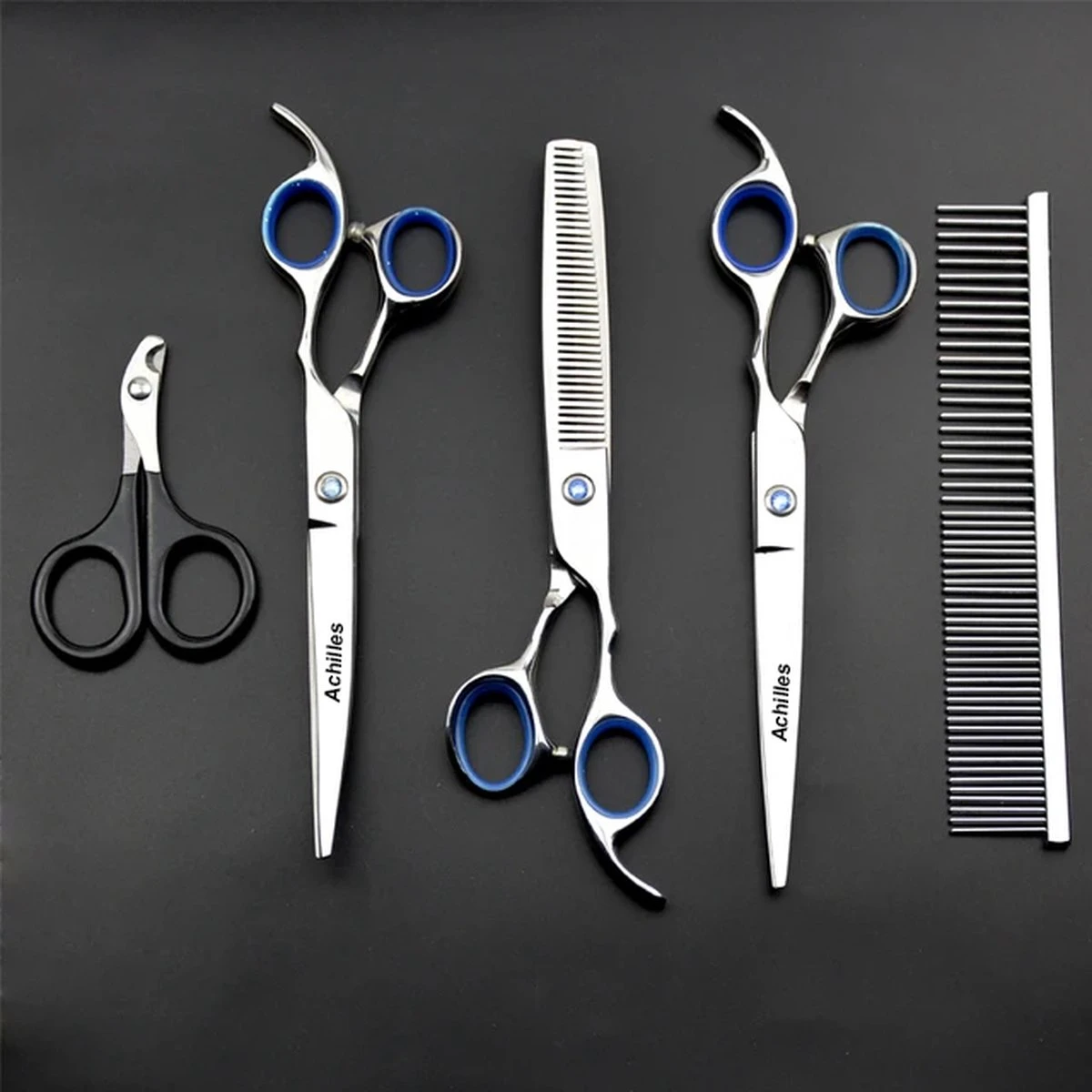 Zijn de haren van uw hond te lang? Wil je je huisdier zelf verzorgen? Dan is de 6-delige scharenset van Achilles de juiste voor u.