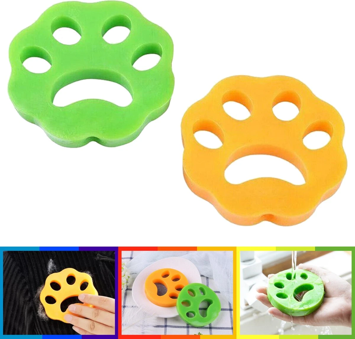 Bent u het zat om haren van huisdieren op uw kleding te krijgen of om kleding te wassen? Met zachte voeten is dit geen probleem meer. Met de ontpluizer van deze wasmachine verwijder je gemakkelijk honden- en kattenhaar. Pluisverwijderaars kunnen worden gebruikt om dierenharen van kleding, beddengoed en kussens te verwijderen. Een set bevat 2 stuks. E茅n in het groen en e茅n in oranje. Het kopen van 2 sets bespaart geld. 2 sets = stuks