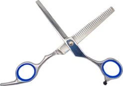 De effileerschaar is een professionele, 6 inch/15,24 cm. De schaar is gemaakt van hoogwaardig roestvrij staal. Deze uitdunschaar is speciaal ontworpen voor het verzorgen van huisdieren en is een belangrijk hulpmiddel voor elke dierenverzorger of huisdiereigenaar. De schaar weegt slechts 58g en is verkrijgbaar met een prachtige blauwe kleur als afwerking en grip in de ogen van de schaar.