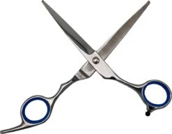 Beide scharen zijn professionele, 6 inch/15,24 cm. De scharen zijn gemaakt van hoogwaardig roestvrij staal. Speciaal ontworpen voor het verzorgen van huisdieren, een belangrijk hulpmiddel voor elke dierenverzorger of huisdiereigenaar. Iedere schaar weegt slechts 58g en is verkrijgbaar met een prachtige blauwe kleur als afwerking en grip in de ogen van de schaar.