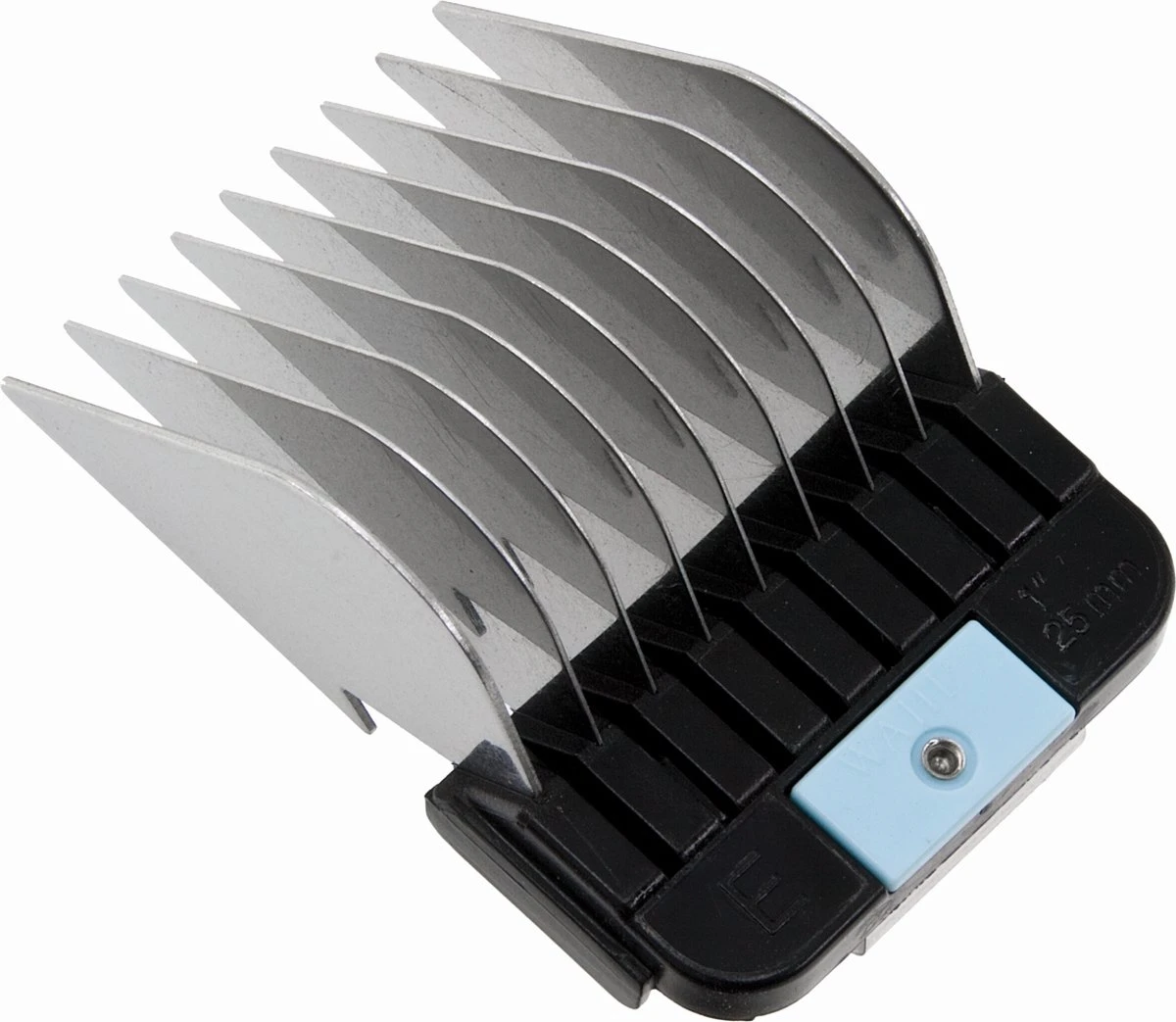 De Opzetkam Nr. 8 Type 2 van Moser is een 25 mm dikke opzetkam, de opzetkam is opklikbaar. Met de opzetkam behoud je de gewenste haarlengte tijdens het scheren. De kam is vervaardigd uit kwalitatief, roestvrijstaal en is lichtblauw van kleur. Roestvrijstalen kammen glijden snel en efficiënt door de vacht voor een gladde afwerking. Vergeleken plastic kammen heb je een beter resultaat en kan je stabieler werken. Je kan de Opzetkam Nr. 8 Type 2 gebruiken voor onderstaande tondeuses: