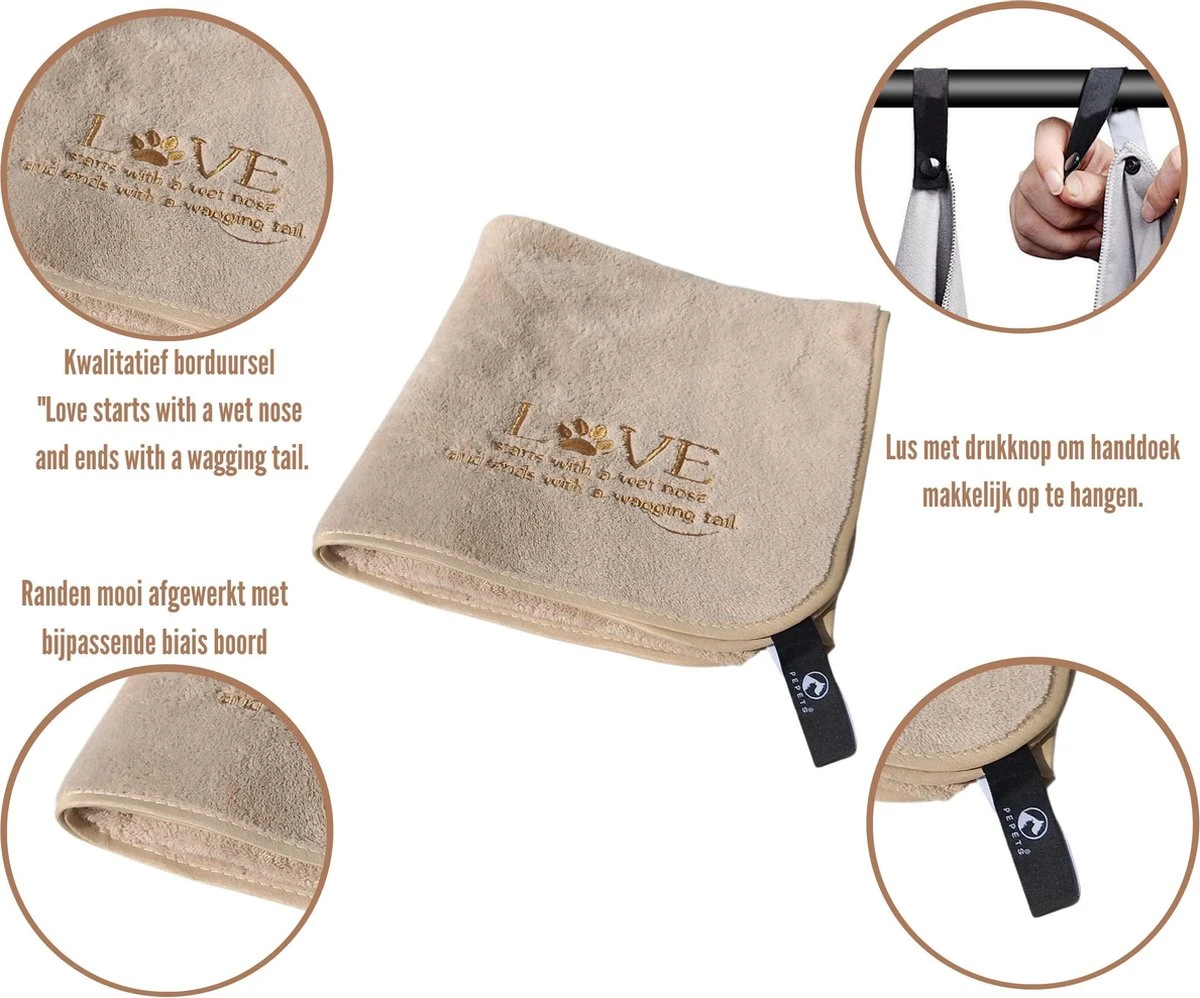 De hondenhanddoek droogt uitermate snel