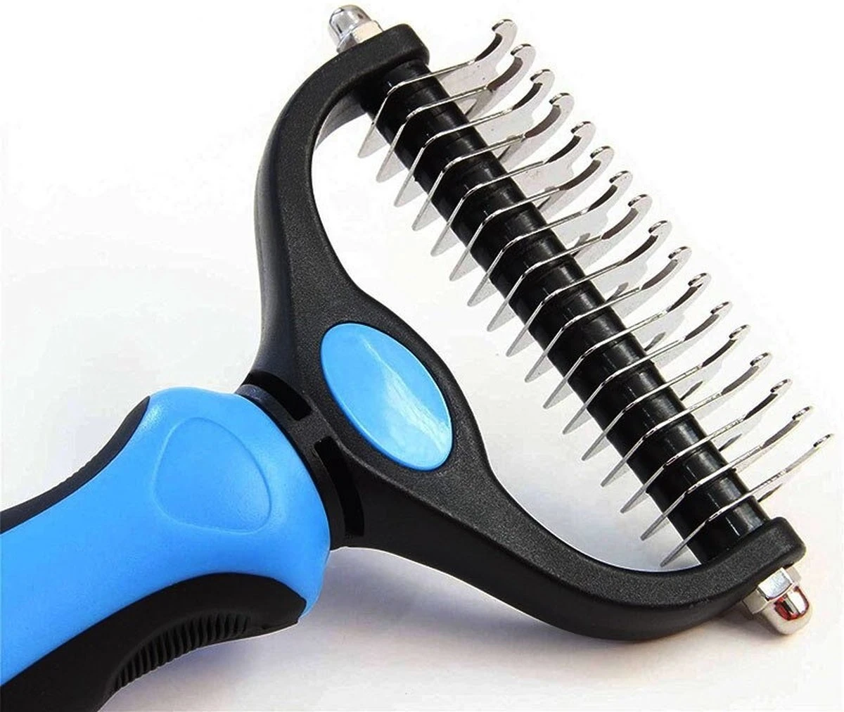 Dat is heel vervelend, dat vinden wij ook. Met deze 2-zijdige ondervacht kam is dit verleden tijd! Dankzij de afgeronde bladen verwijdert u in een paar minuten alle klitten en overtollige haren met de hondenkam/kattenkam zonder dat uw harige vriend hier last van heeft. Na gebruik van de kam zal de vacht van uw vriendelijke viervoetter er weer gezond, glanzend en verzorgd uit zien!
