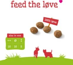 SamenstellingKippenmeel (18%), mais, gerst, rijst, sorghum, kippenvet (gestabiliseerd met natuurlijke tocoferolen), lamsmeel (4%), bietenpulp, gehydroliseerd eiwit, cellulose, MSC-gecertificeerde vismeel (2%)*, vitaminen en mineralen mix, gist, MSC-gecertificeerde visolie (0,8%)*, cichorei, natriumhexametafosfaat (0,1%), glucosamine (0,022%) . *Uit een MSC gecertificeerde duurzame visserij.