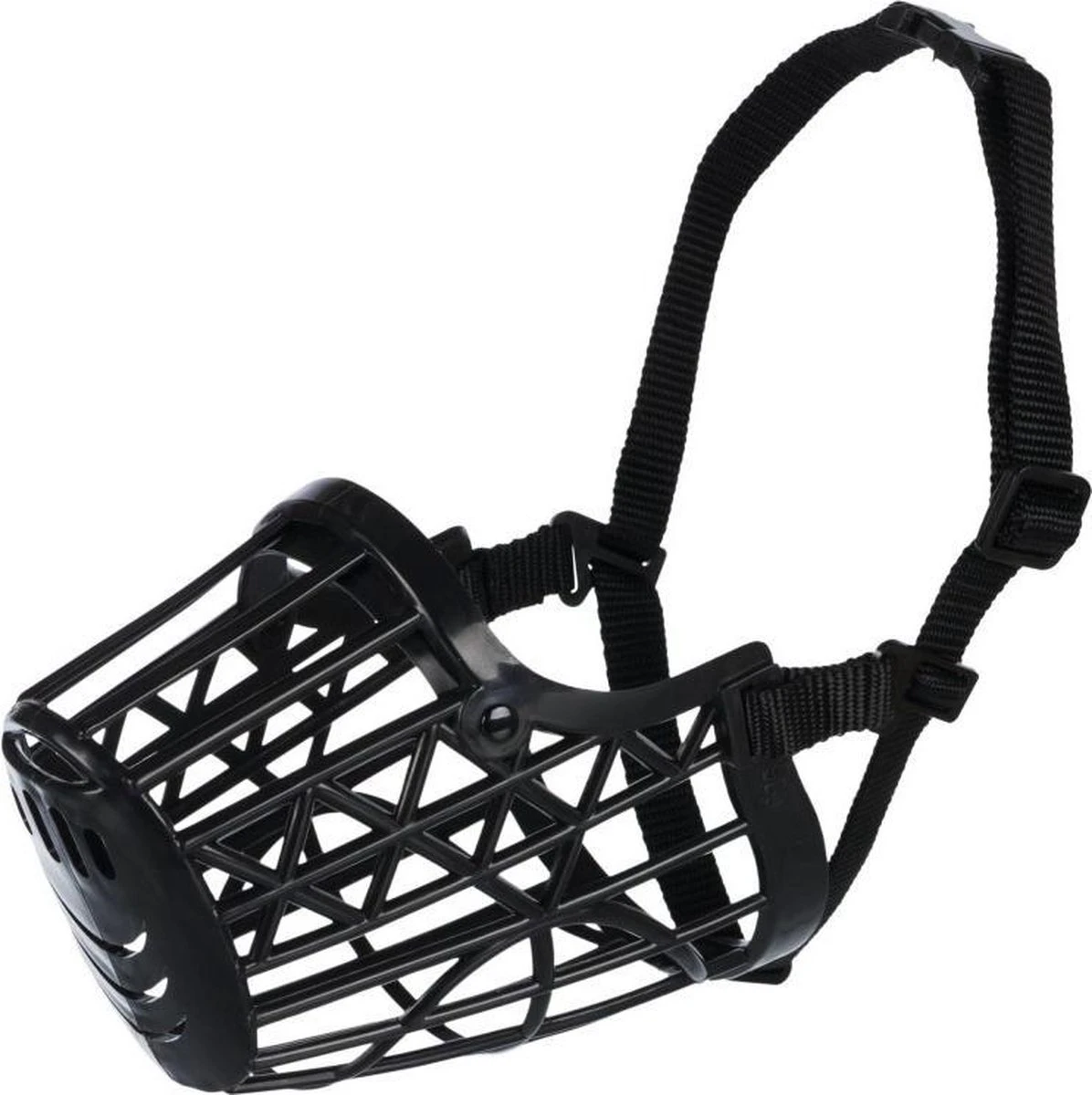 Deze muilkorf van Trixie is speciaal gemaakt om bijten te voorkomen. Het raster is van stevig kunststof en heeft smalle openingen. Hierdoor kan er niets van buitenaf tussen de rasters doorkomen en is de muilkorf erg veilig. De muilkorf kan vastgemaakt worden met een nylon riem die traploos verstelbaar en zit de hond door zijn uitgekiende pasvorm niet in de weg. Voorkomt tevens dat de hond onbedoeld dingen van straat kan eten.